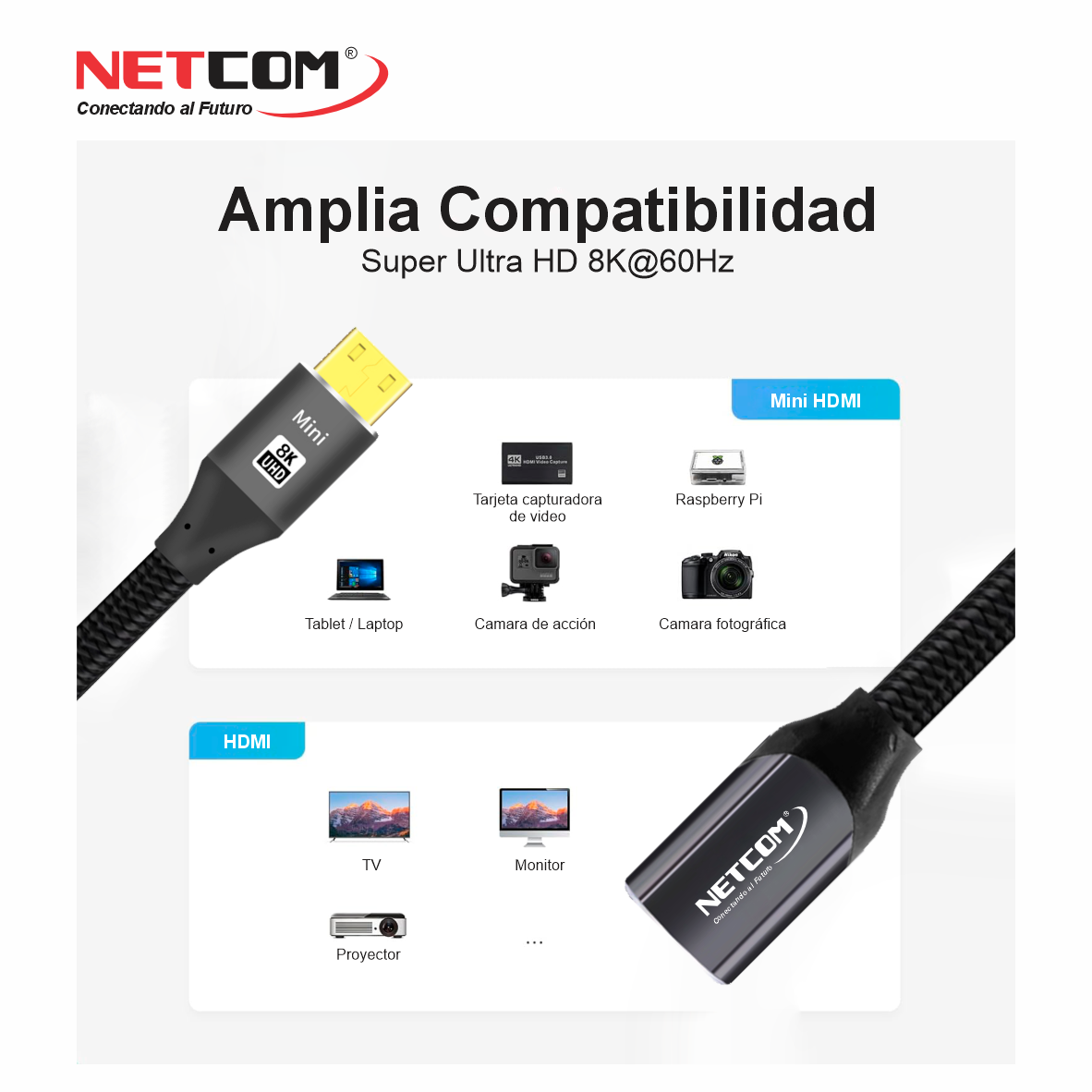 Este cable adaptador Mini HDMI macho a HDMI hembra le permite utilizar un cable estándar HDMI macho a macho para conectar su teléfono, tableta, cámara digital, raspberry Pi y otros dispositivos con interfaz Mini HDMI a un HDTV, proyector o una pantalla de computadora con una interfaz HDMI. Con un conector HDMI estándar (tipo A) en un extremo y uno Mini HDMI (tipo D) macho en el otro, usted puede hacer esta conversión fácilmente y conectarlo a monitores de PC, televisores de alta definición y proyectores HDMI virtualmente en cualquier lugar.