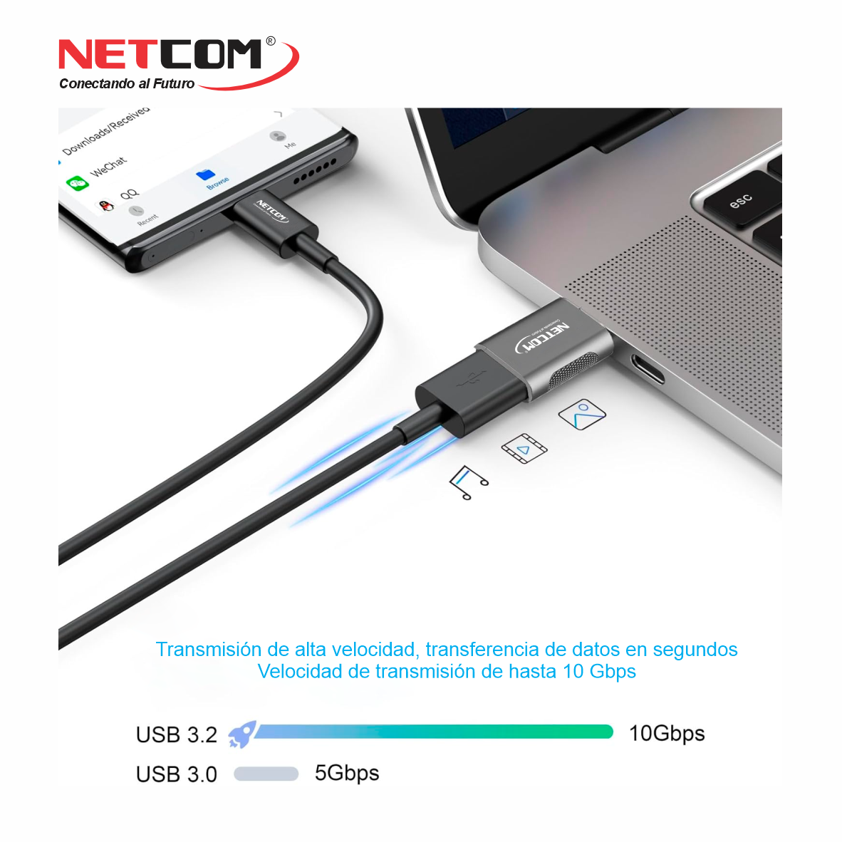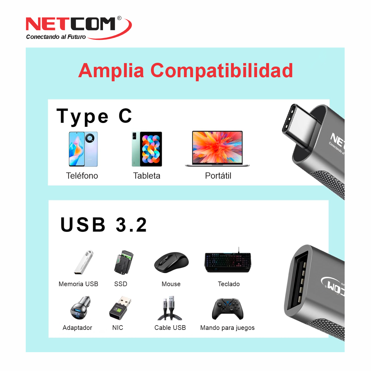 Adaptador OTG V3.2 USB-C Macho a USB-A Hembra
