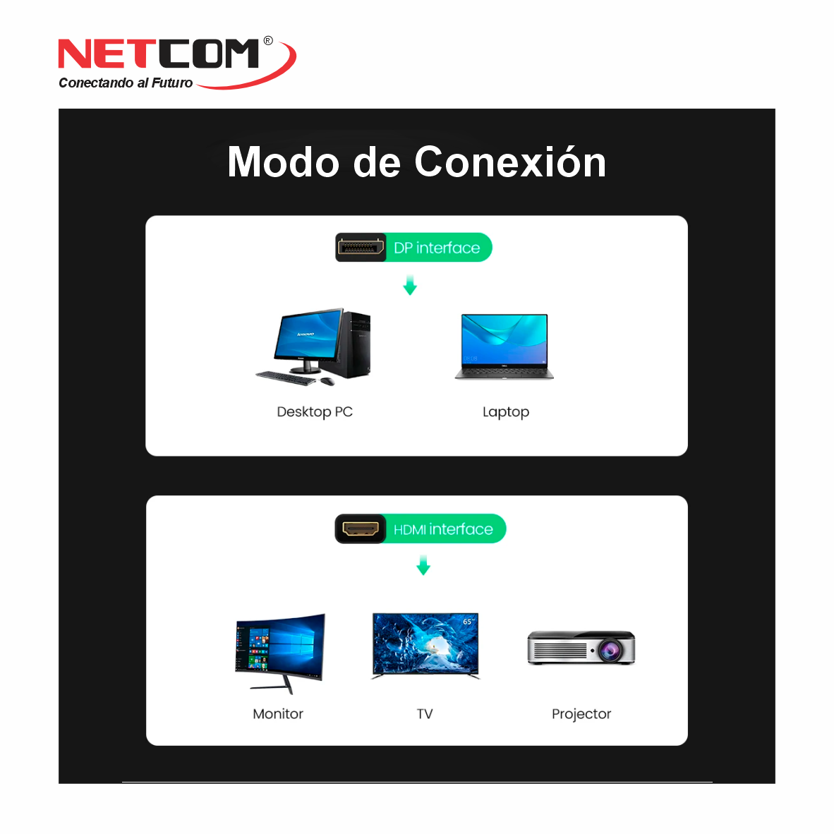 Para garantizar la compatibilidad con cualquier salida DisplayPort, el adaptador ofrece conversión activa, la cual se requiere para mantener resoluciones 4K@60Hz al convertir DisplayPort a HDMI.