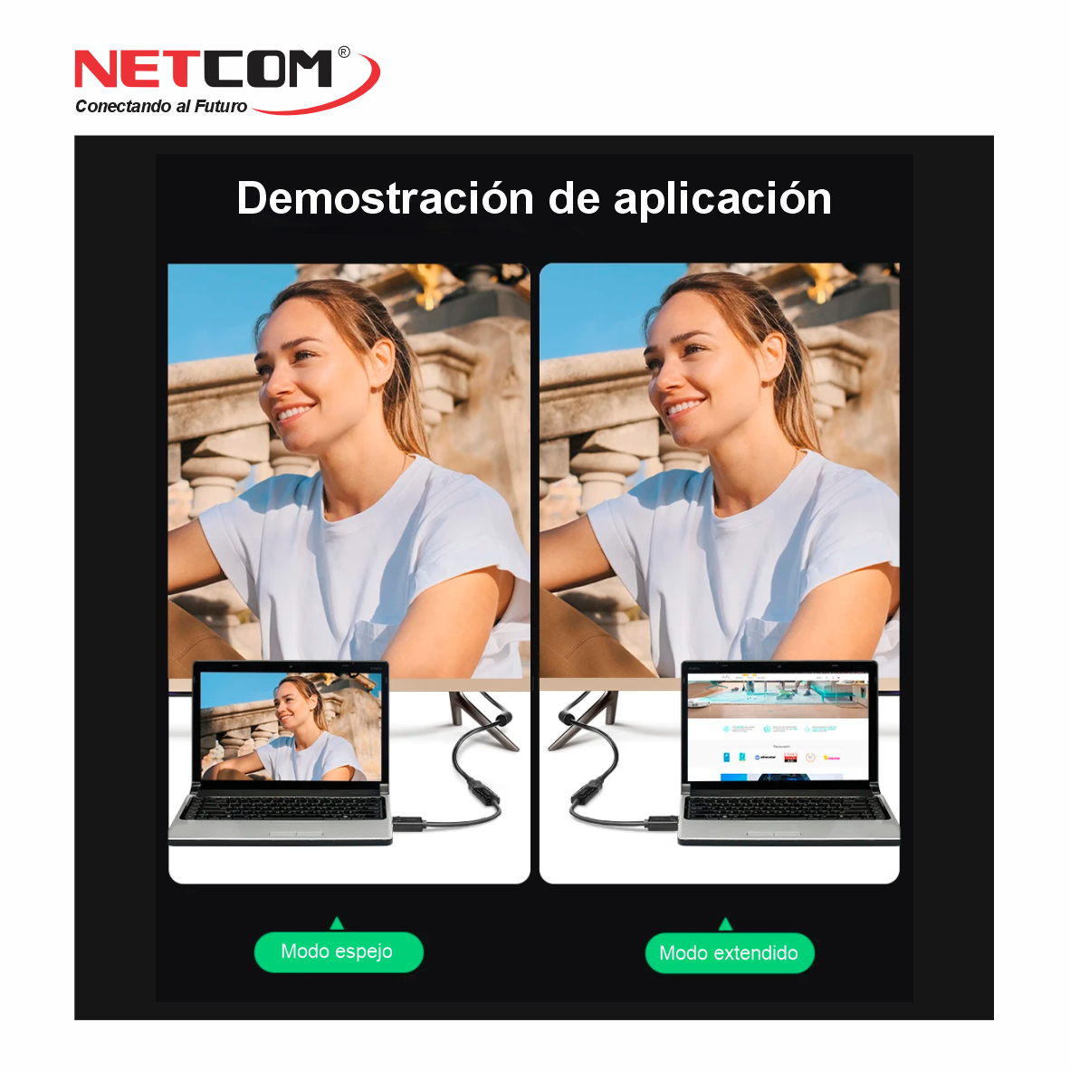 El adaptador es retrocompatible con pantallas 1080p, lo cual garantiza que funcionará con pantallas de menor resolución, como proyectores o televisores domésticos o de su oficina.