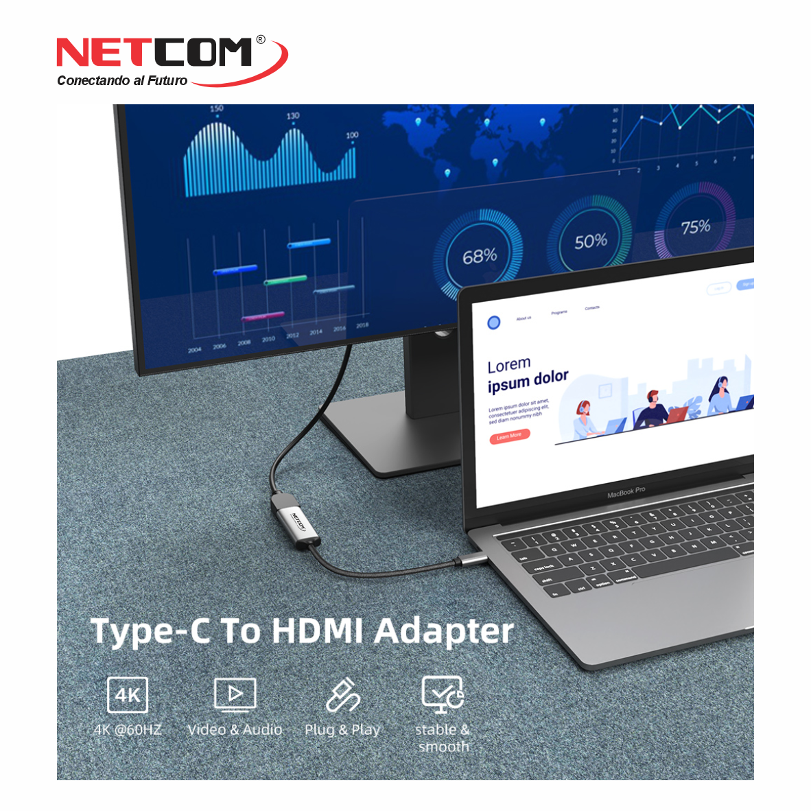 Este adaptador USB tipo C a HDMI le permite conectar monitores/pantallas/proyectores HDMI, con una resolución de hasta 4K @ 60Hz. No se requiere software adicional, una solución perfecta para tus dispositivos de USB-C. Adopta el último Thunderbolt 3/4 a HDMI 2.0, transmitiendo datos a velocidades de hasta 18 Gbps y resoluciones de 4K de hasta 3840×2160 a 60Hz. También es compatible con HDMI 1.4, 1.3 y 1.2 anteriores. El adaptador de USB tipo C a HDMI ofrece videos limpios, vívidos y sin interrupciones, este adaptador de 60Hz es ideal para aprovechar al máximo tu nuevo monitor, televisor o proyector 4K.