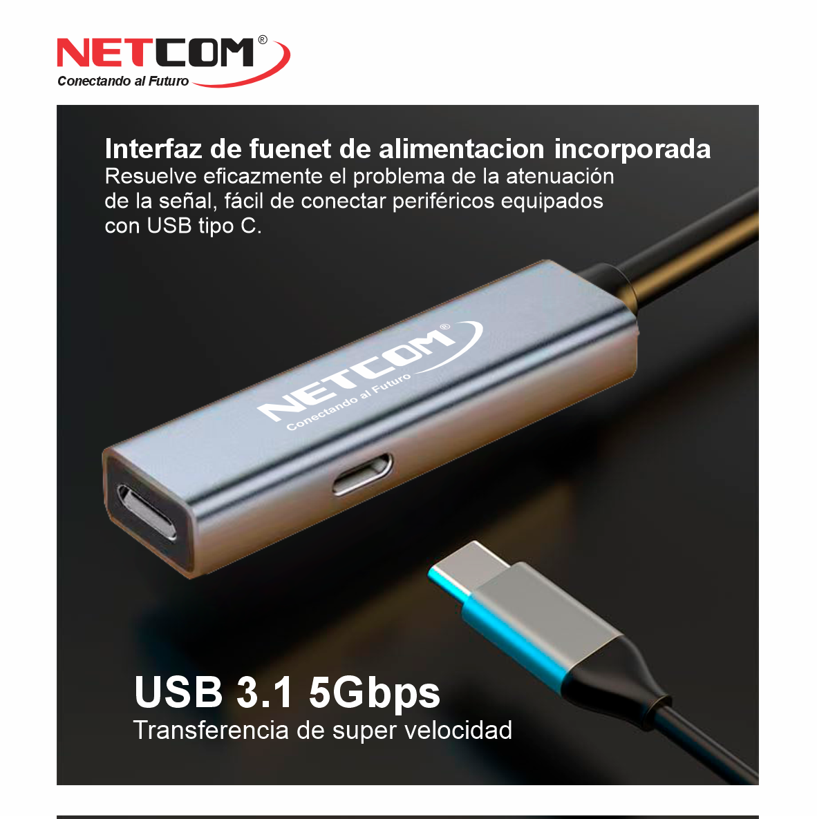 Este cable extensión USB-C utiliza electrónica activa integrada para extender la longitud del cable de un dispositivo USB. Con un conector de entrada tipo C macho reversible en un extremo y puerto tipo C hembra en el otro extremo permite colocar cómodamente periféricos como, impresoras, escáneres, unidades de almacenamiento externas, unidades ópticas Blu-ray, vidrios VR, cámara web, cámara de videoconferencia, cámara de vigilancia interior / exterior, pantalla interactiva y otros dispositivos con interfaz USB-C a cierta distancia de su ordenador o portátil. Compatible con todas las computadoras equipadas con USB Tipo C 3.1/3.2 y Thunderbolt 3 / 4, esta es una herramienta de extensión perfecta para las últimas computadoras portátiles, Macbooks y computadoras tipo C. Con funcionalidad plug and play, admite intercambio en caliente, este cable de extensión se puede instalar rápidamente y con el mínimo esfuerzo. El cable de extensión activa USB también cuenta con un enchufe de CC para conectar una fuente de alimentación externa (no incluida) cuando se utilizan periféricos USB que tienen requisitos de alimentación más altos. Tenga en cuenta que la entrega de alimentación USB y el modo alternativo DisplayPort no son compatibles. La información sobre USB 3.0, 3.1 y 3.2 USB 3.0, USB 3.1 y USB 3.2 PC, cables y dispositivos son compatibles entre sí, cuando se utiliza una interfaz de host USB tipo A o USB tipo C. USB 3.0, USB 3.1 Gen 1 y USB 3.2 Gen 1 soportan velocidades de transferencia de datos de hasta 5 Gbps.