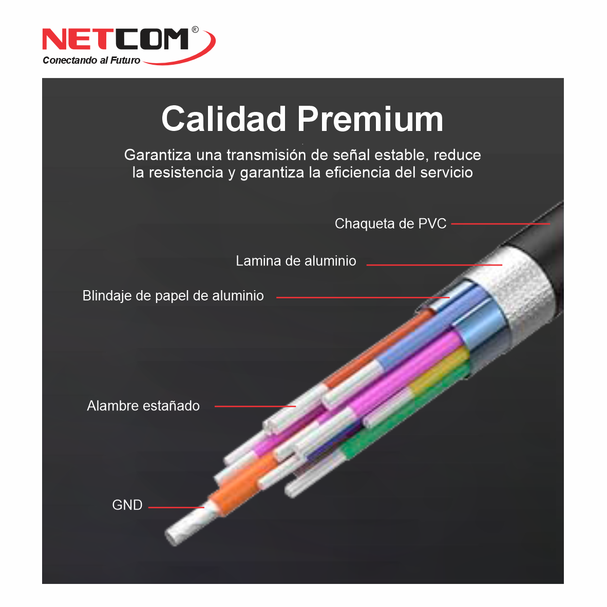 * Triple blindado (lámina/trenza/tierra) que proporciona la máxima resistencia de EMI/RFI y calidad de señal superior. La estructura de cuatro núcleos asegura que la señal diferente no interfiera entre sí.