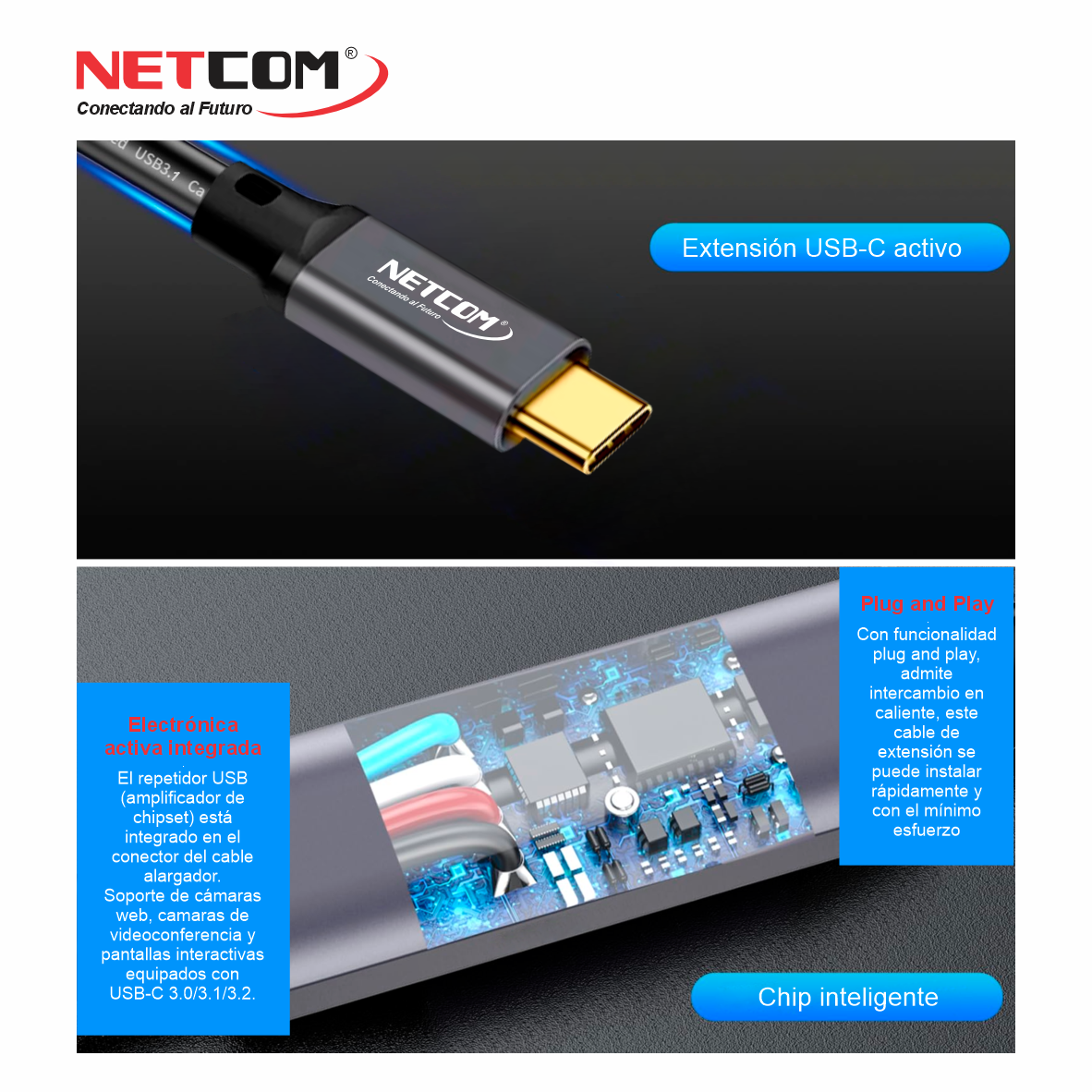 Este cable extensión USB-C utiliza electrónica activa integrada para extender la longitud del cable de un dispositivo USB. Con un conector de entrada tipo C macho reversible en un extremo y puerto tipo C hembra en el otro extremo permite colocar cómodamente periféricos como, impresoras, escáneres, unidades de almacenamiento externas, unidades ópticas Blu-ray, vidrios VR, cámara web, cámara de videoconferencia, cámara de vigilancia interior / exterior, pantalla interactiva y otros dispositivos con interfaz USB-C a cierta distancia de su ordenador o portátil.