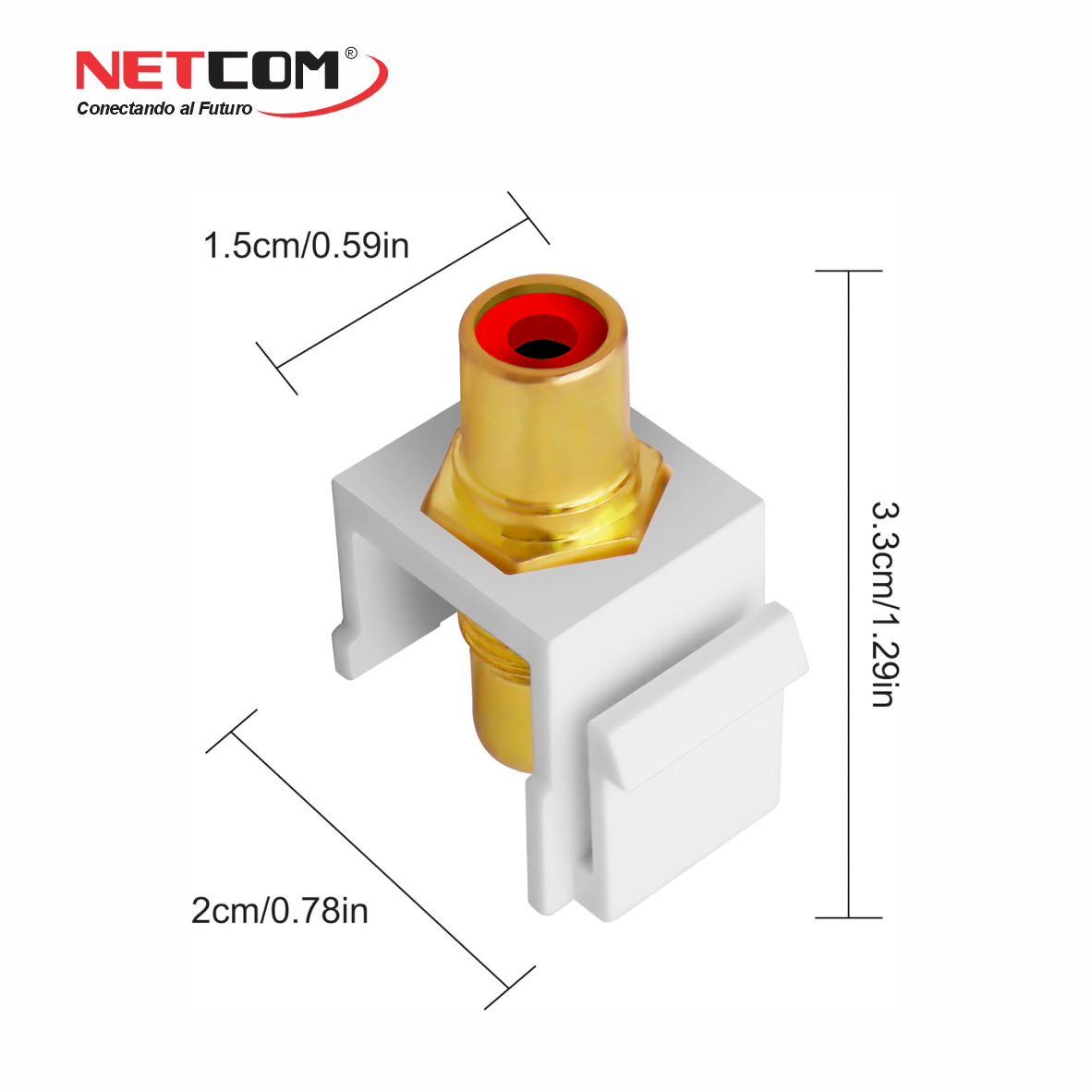 Esta inserción de conector Keystone RCA color rojo proporcionan una forma segura y rápida de conectar un cable RCA a sus equipos como puede ser un subwoofer, receptor estéreo u otro dispositivo equipado con puerto RCA de audio. Estas inserciones de grado comercial proporcionan una alternativa que ahorra tiempo y ordenada a usar cables RCA largos en el suelo. Estas inserciones de conector Keystone de grado comercial están diseñadas para uso frecuente y construidas para durar. Construcción robusta lo que proporciona una conexión segura; los insertos de conector Keystone reutilizables se pueden desconectar y reubicar fácilmente al actualizar o redecorar.